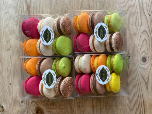 Glutenfrie makroner som inneholder Sukker, MANDLER, melis,FLØTE, EGGEHVITTE, SMØR, pektin og lektin